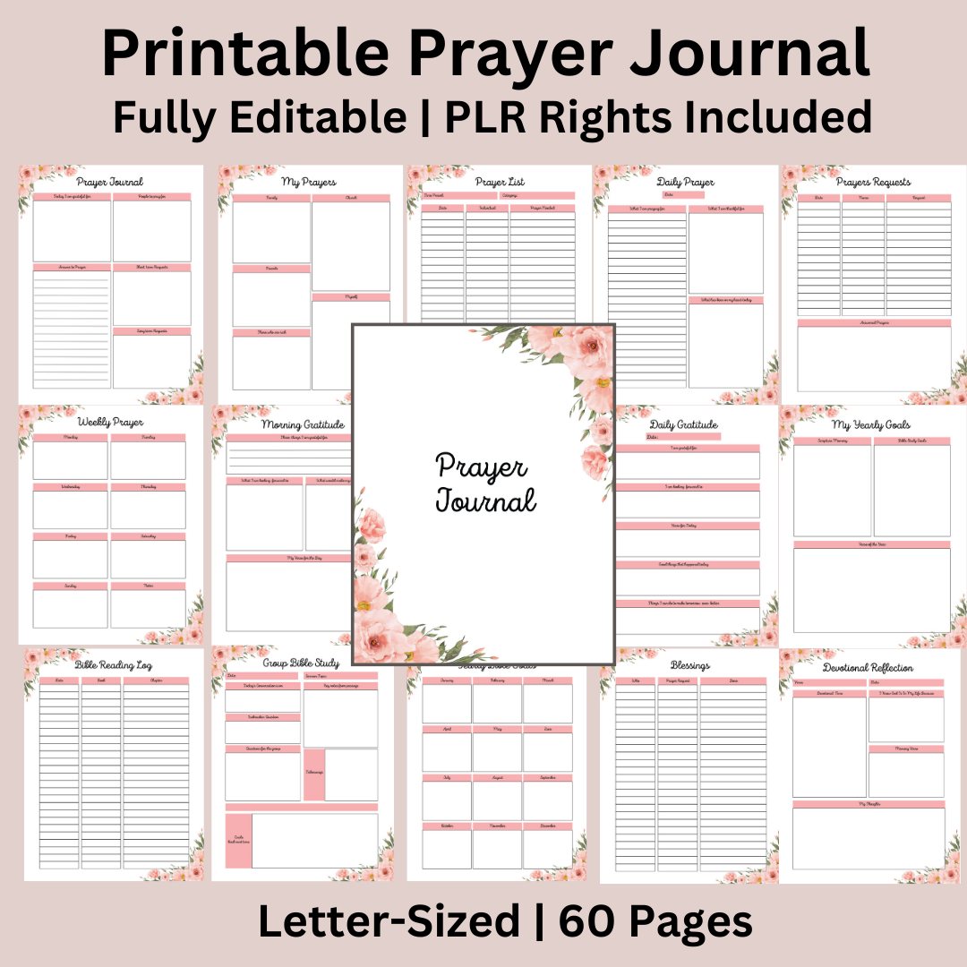 Grab this 60-page, Letter-Sized Prayer Journal with PLR Rights! That means that you can purchase this product, then turn around and resell it "as is" or edit it and make it your own.